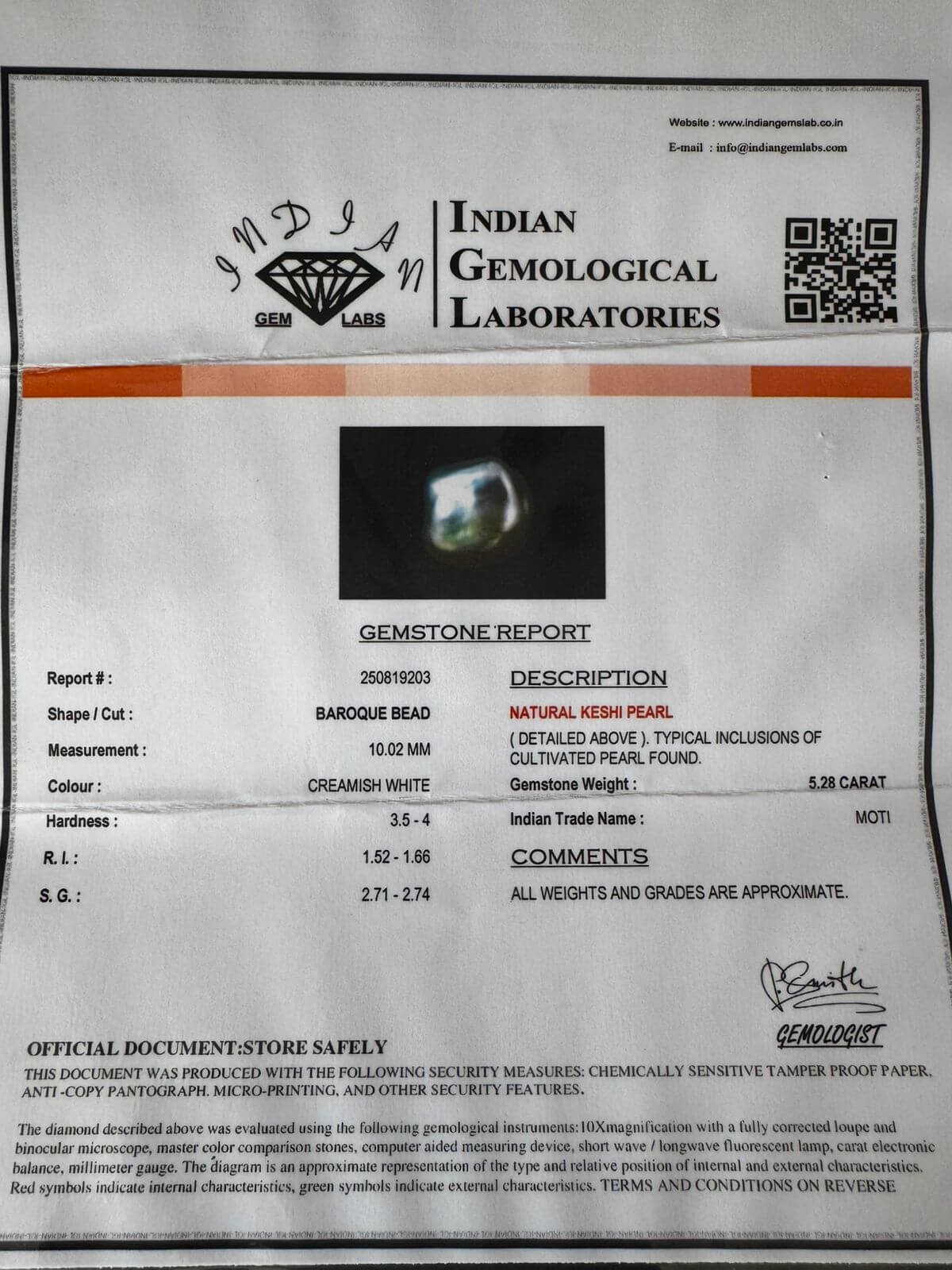 5.28 Carat/ 5.86 Ratti Natural Keshi Saltwater Pearl (Moti)