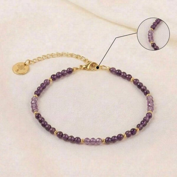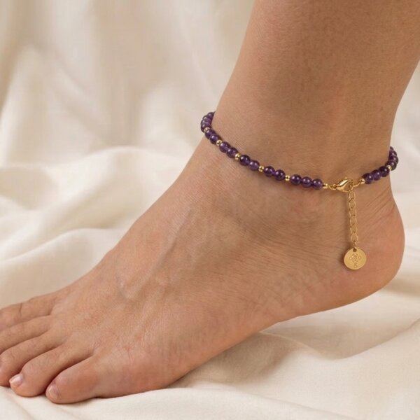 Each anklet uses natural amethyst stones, so the color, shape, and texture may vary slightly. Therefore, every piece looks unique and special.