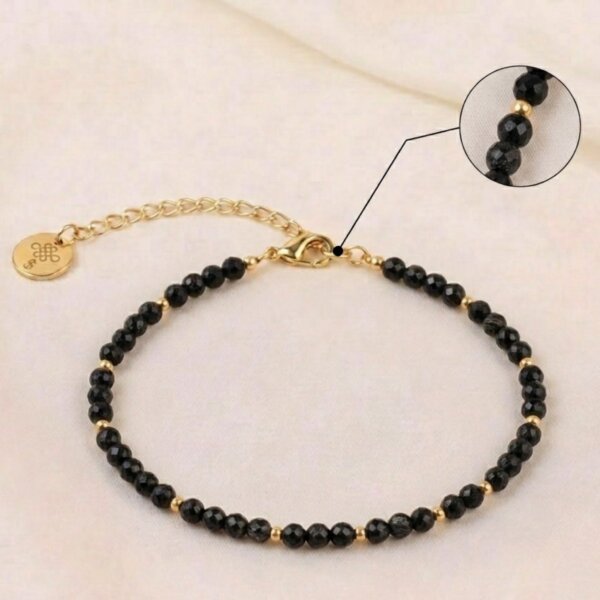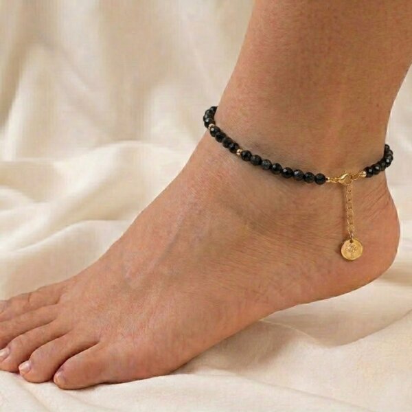 Each anklet uses natural black tourmaline stones, so the color, shape, and texture may vary slightly. Therefore, every piece looks unique and special.