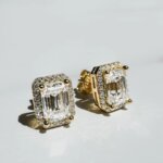 Emerald Cut CVD Diamond Halo Stud Earrings