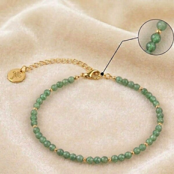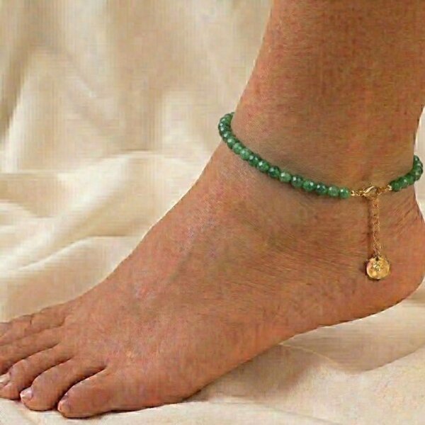 Each anklet uses natural green aventurine stones, so the color, shape, and texture may vary slightly. Therefore, every piece looks unique and special.