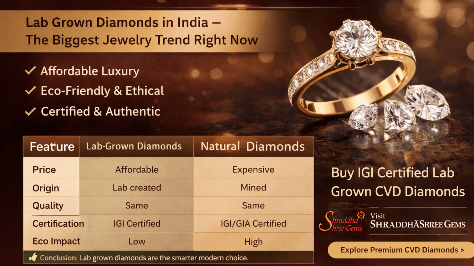 👉 Conclusion: Lab grown diamonds are the smarter modern choice.
