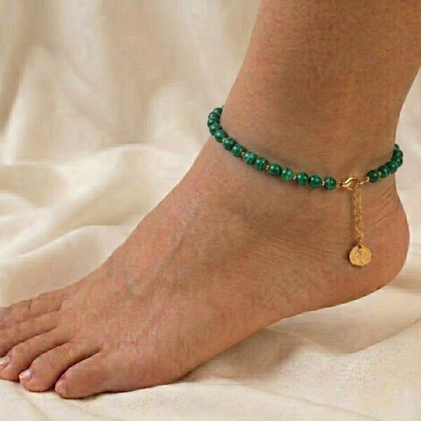 Each anklet uses natural malachite stones, so the color, shape, and texture may vary slightly. Therefore, every piece looks unique and special.