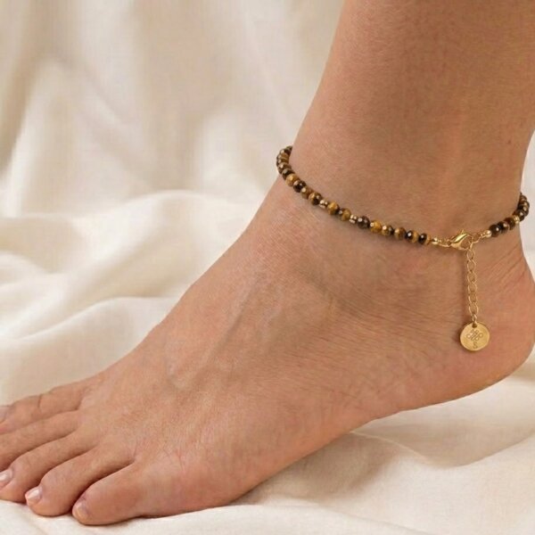 Each anklet uses natural tiger eye stones, so the color, shape, and texture may vary slightly. Therefore, every piece looks unique and special.